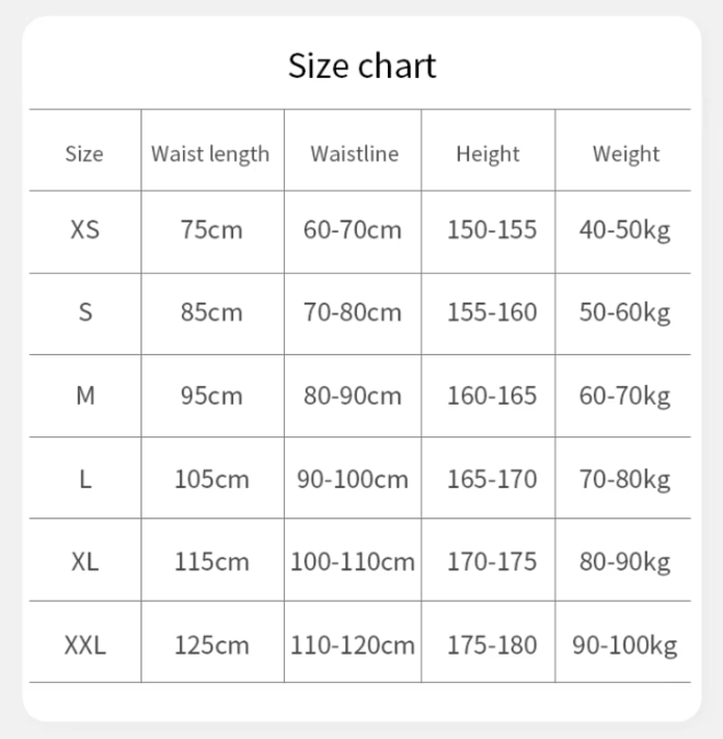 Size: XS, S, M, L, XL, XXL